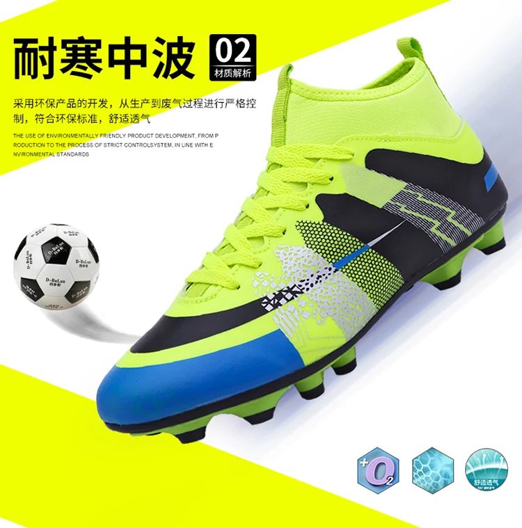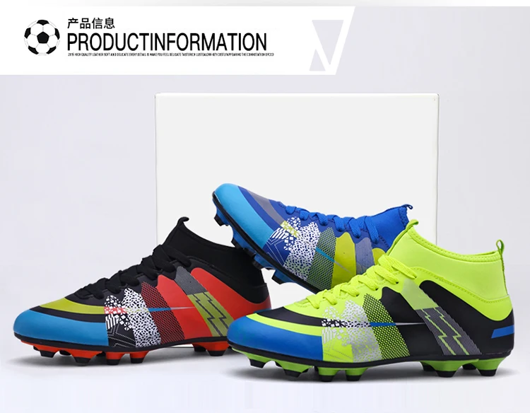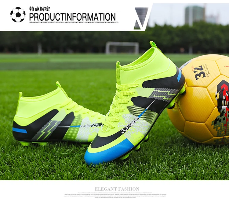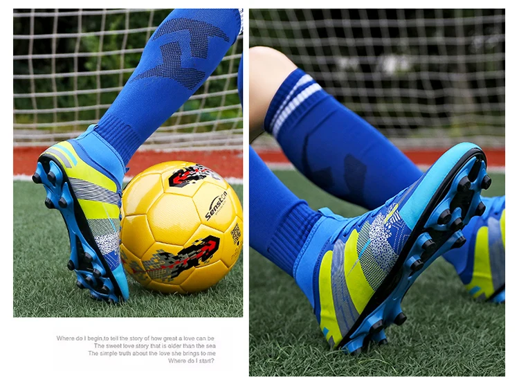 Step up your game with our premium High Top Football Shoes, designed to deliver exceptional performance across diverse playing conditions. These versatile soccer boots​ feature a robust lace-up​ closure that ensures a customizable, secure fit for players of all ages, from children​ to adults. Optimized for FG​ (Firm Ground) and HG​ (Hard Ground) surfaces, the advanced outsole provides reliable traction on natural grass, artificial turf, and hard fields, making them ideal for intense team sports​ like soccer and football. The high top​ design offers enhanced ankle support, reducing injury risks during quick turns, jumps, and sprints, while the lightweight construction promotes agility without sacrificing durability. Crafted with breathable materials, these unisex​ shoes keep feet cool and dry during prolonged use, and the cushioned insole adds comfort for all-day wear. Whether you're a competitive athlete or a casual player, these football shoes​ adapt seamlessly to training sessions, matches, or recreational play. Their unisex styling ensures a perfect fit for men, women, boys, and girls, emphasizing inclusivity and versatility. Embrace a blend of innovation and reliability with these all-purpose soccer boots—your go-to footwear for dominating outdoor sports with confidence and style.