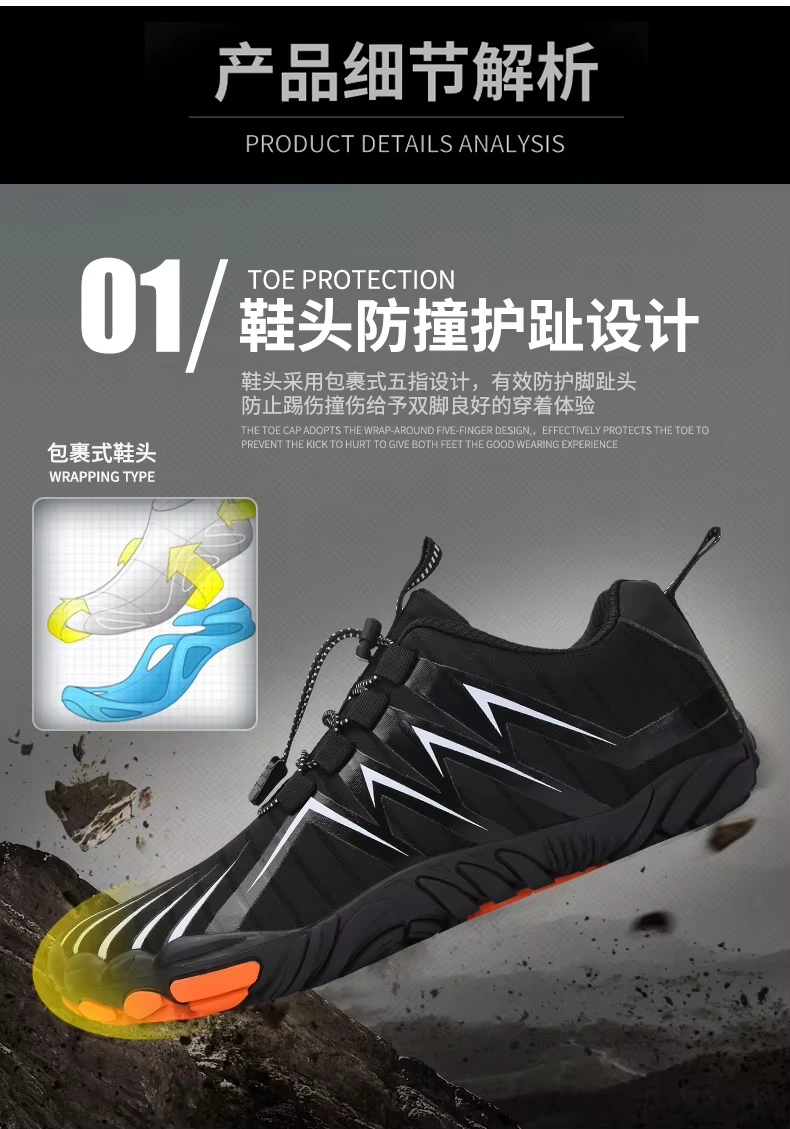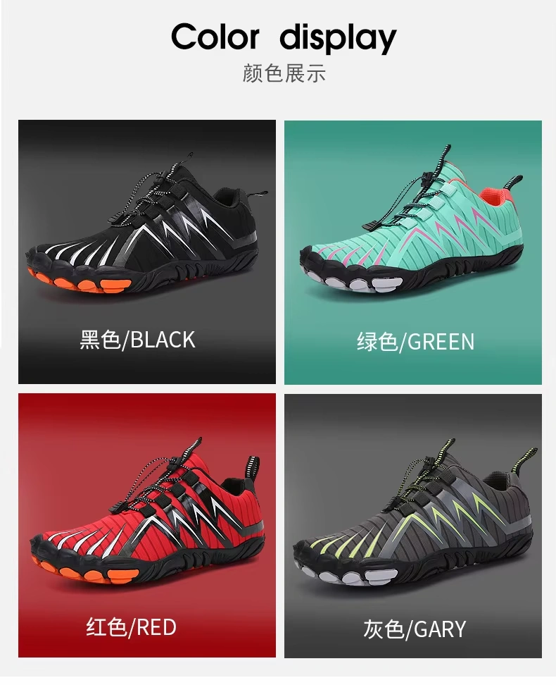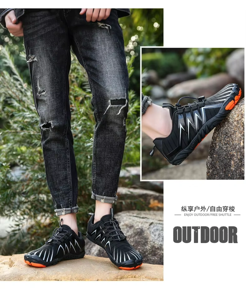 Step into a new realm of outdoor adventure with our innovative Unisex Five-Finger Barefoot Shoes. Meticulously engineered for the active lifestyle, these shoes redefine freedom of movement. The unique five-finger design separates each toe, mimicking the natural barefoot experience while providing protection and superior grip. Crafted with a high-performance natural rubber outsole, they deliver exceptional anti-slip traction on varied terrains—from wet rocks and sandy beaches to slippery trails. Their incredibly light weight construction ensures you can hike, climb, and move for longer periods without fatigue.
